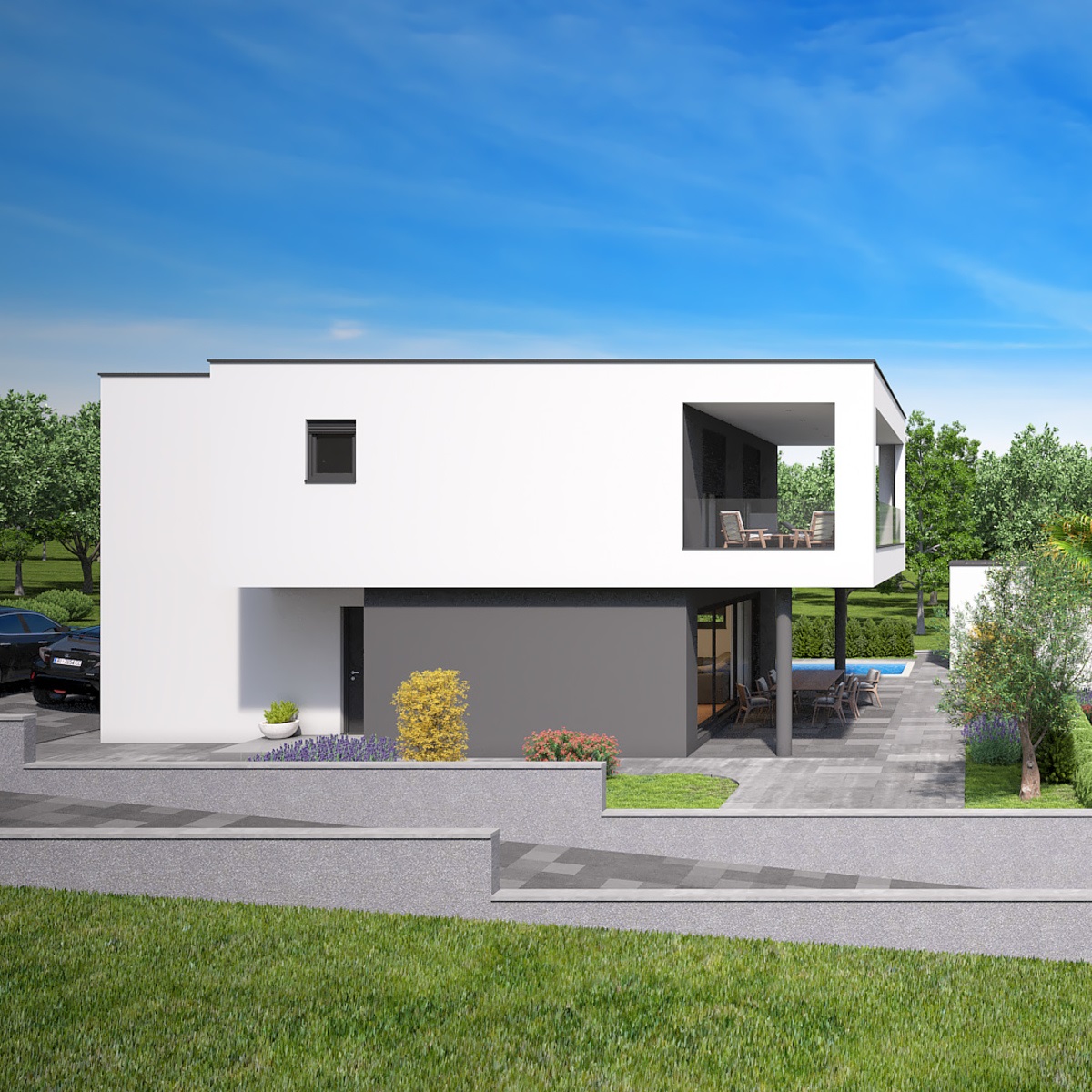 Kuća ima predviđena 2 parkirna mjesta u dvorištu.
