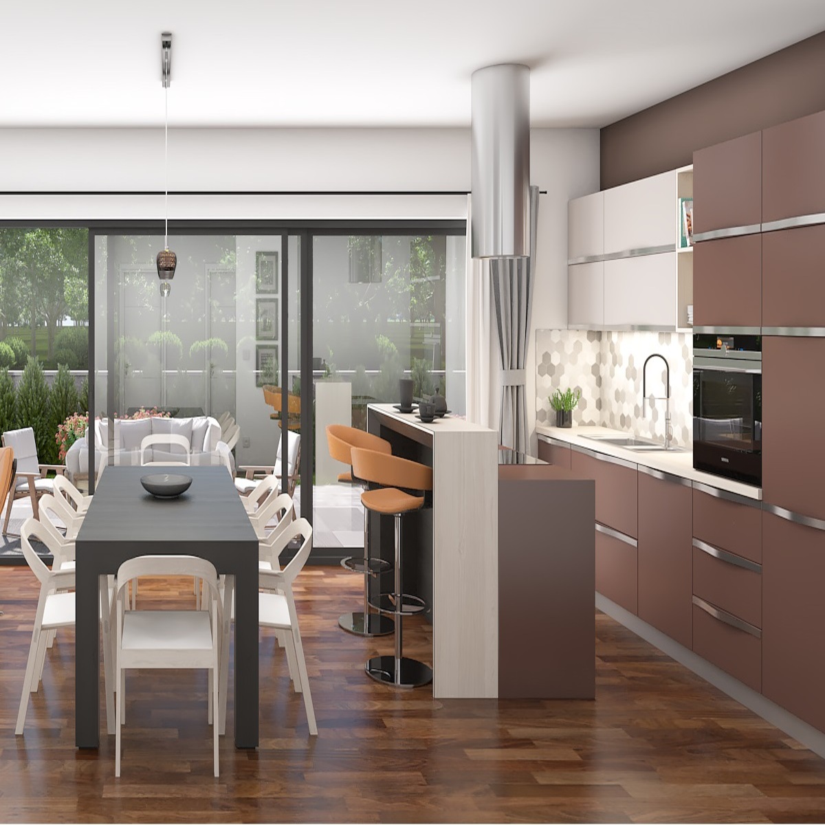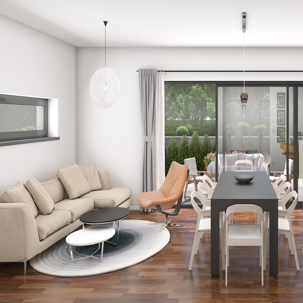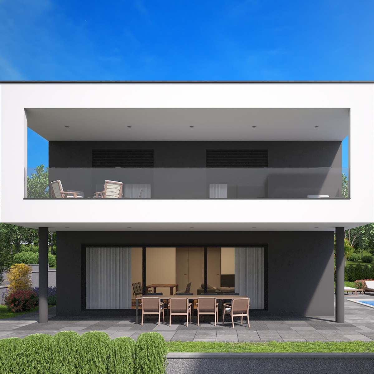 Kuća je ukupne površine od 200 m2 s velikom natkrivenom terasom u prizemlju i na katu.