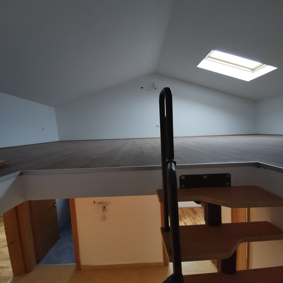 Površine je 77 m2 koji se dijele na 55 m2 na prvoj etaži